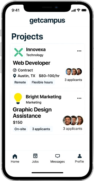 Hire vetted students and alums for freelance, project-based, part-time, or full-time work, all in one place.